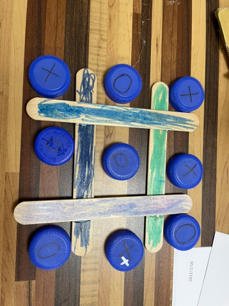 這些遊戲都是利用生活中容易取得的物品,例如厚紙板、瓶蓋、牛奶盒、冰棒棍就可以製作完成的呦!