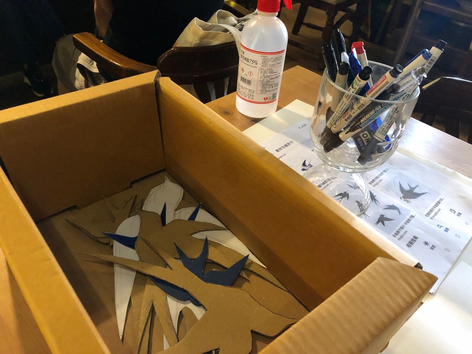 熟悉瑞芳區域的夥伴應該會知道, 每年五至七月是燕子的繁殖季節! 到了這個季節,總是有燕子穿梭在巷弄,於是我們與講師討論,希望透過藝術結合燕子飛翔,並搭配戶外燕子盤旋的畫面,美淨義不容辭接下任務,並著手準備燕子模板,以及數張禪繞畫的樣張。