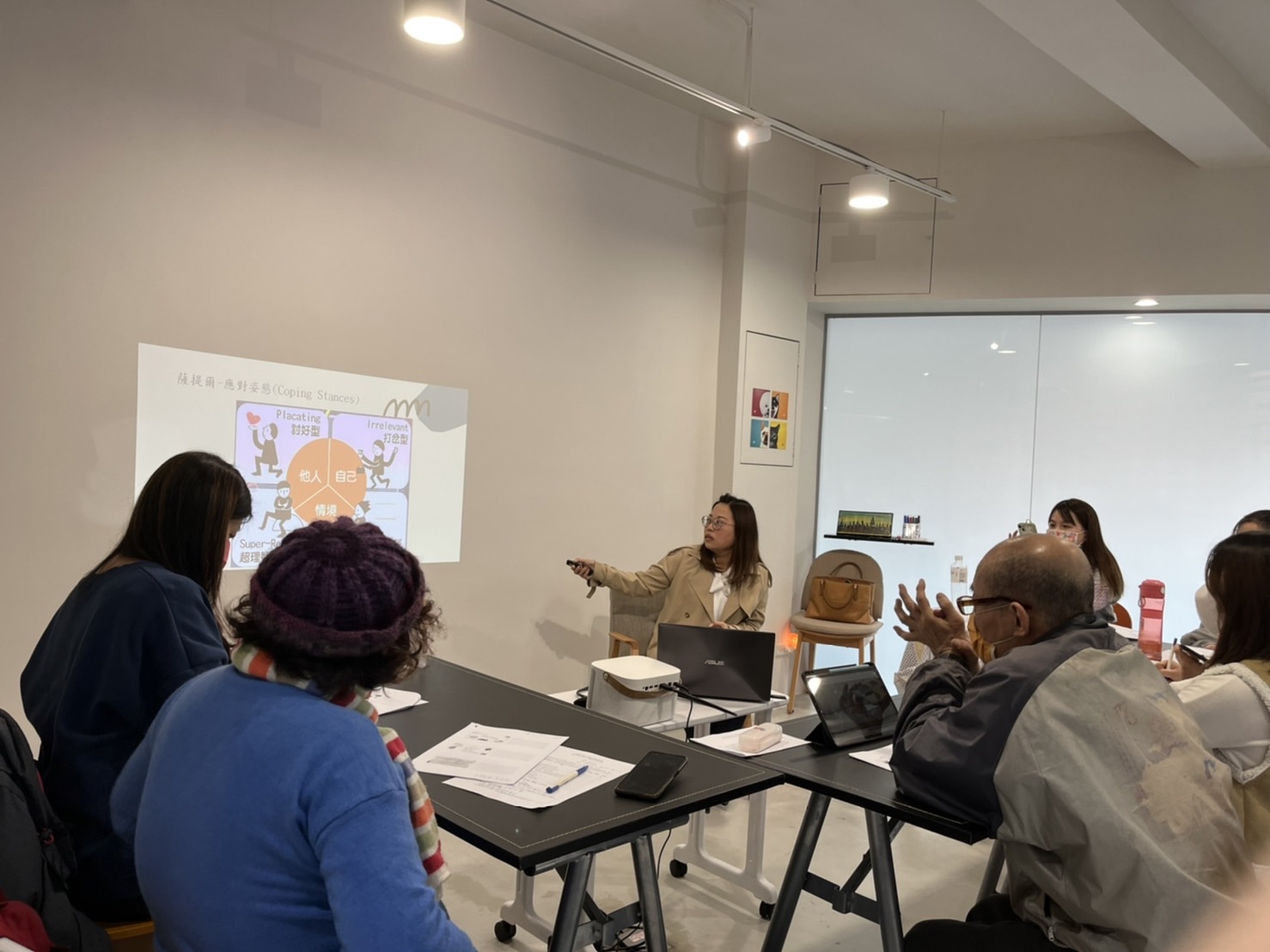 講師分享在互動關係裡,最重要的是能透過學習與練習,進而能說到做到、覺察並表達感受、真誠的溝通,進而能建立明確的界線,這時有單親家長詢問到,可是每一次的覺察,都讓我感覺好像永無止盡,不知道終點在哪裡,老師回應道這本來就不容易,家長們不需要急著去達成目標,但需要漸進的努力,因為這就是生命的課程。