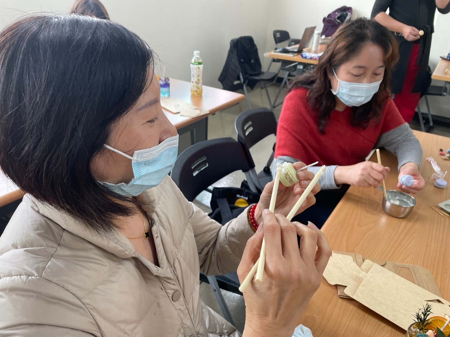 本次很開心邀請@小麥閒閒手作的 Debby老師帶領我們製作馬卡龍蠟燭和氣泡飲蠟燭,