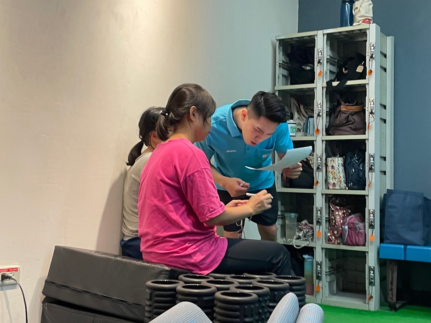 教練說明肌肉重量不足不等同於肌少症,建議成員要開始做阻力訓練,