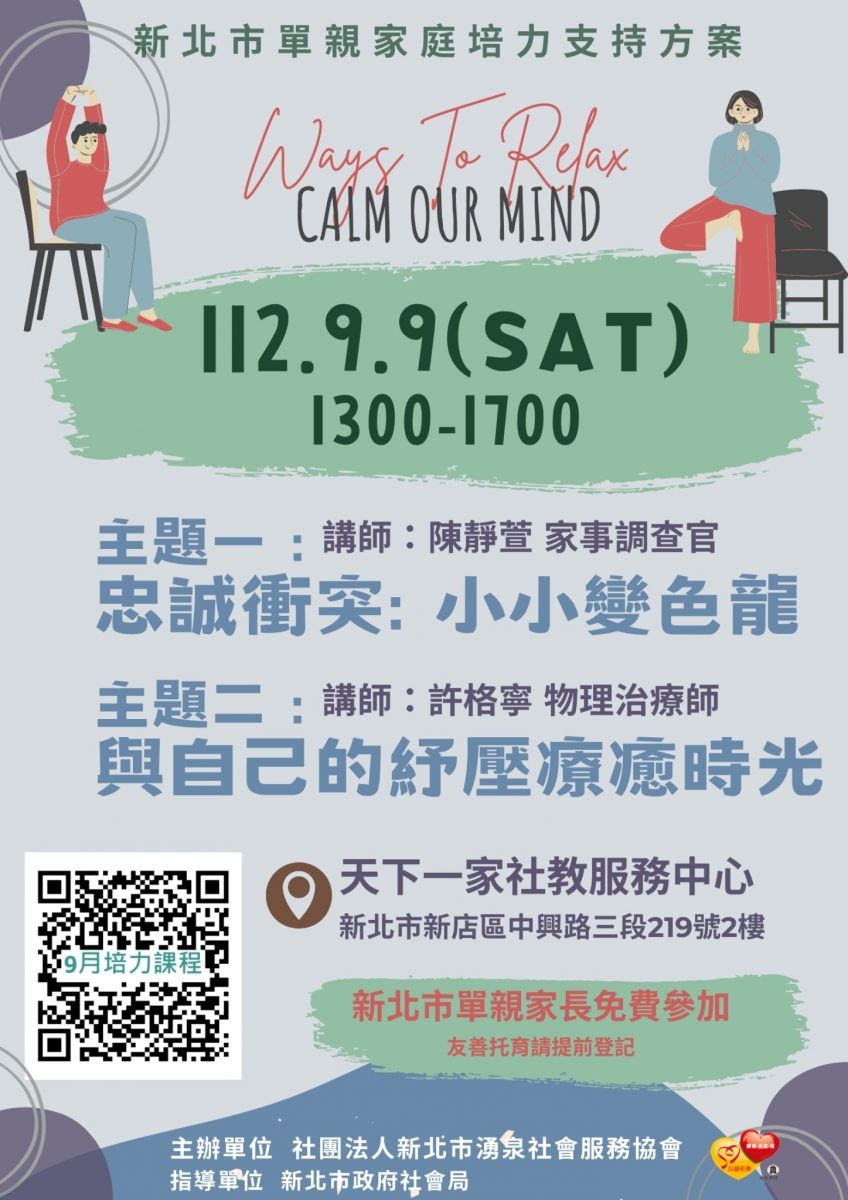 ※活動報名※【單親培力支持方案】9月講座