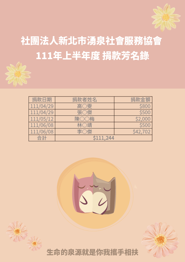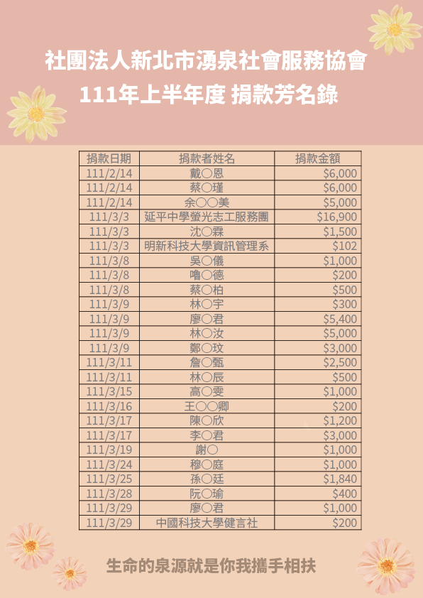 111年上半年度捐款芳名錄